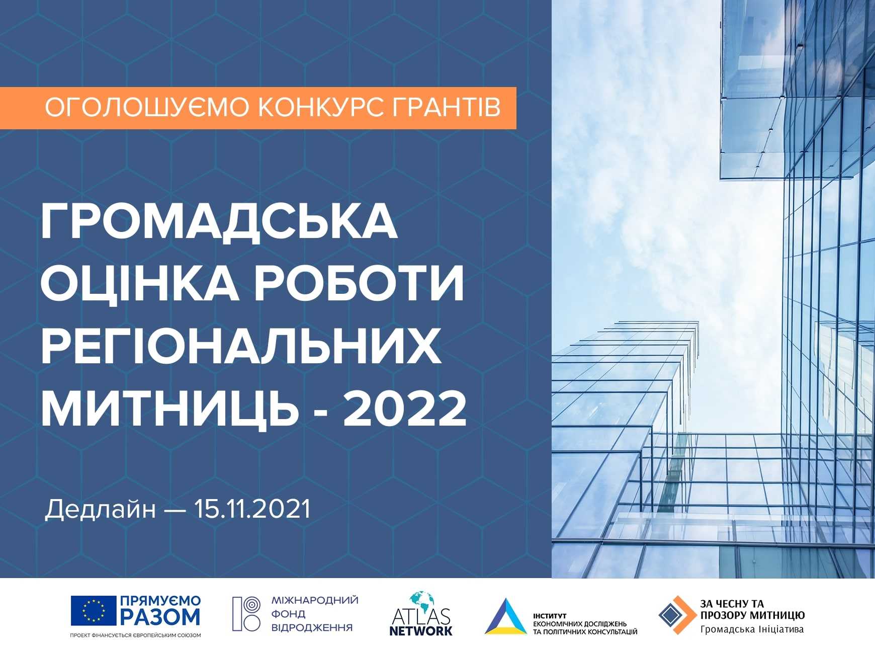 Інститут економічних досліджень та політичних консультаційу рамках проєкту «Підтримка Громадської ініціативи «За чесну та прозору митницю», що фінансується Європейським Союзом, оголошує третю хвилю конкурсу грантів на тему «Громадська оцінка роботи регіональних митниць – 2022».