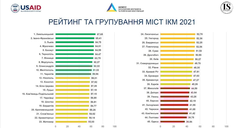 Оприлюднили рейтинг 45-ти найбільших міст України за якістю ділового середовища.