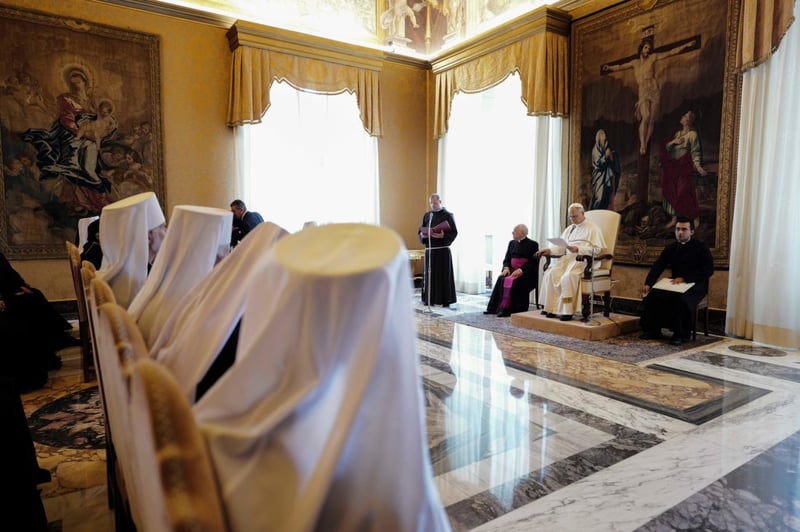На початку зустрічі Святіший Отець попросив єпископів УГКЦ виконати «Отче наш» українською мовою, що він високо оцінив. Після цього глава УГКЦ передав Папі списки громадян України, узятих у полон під час війни.