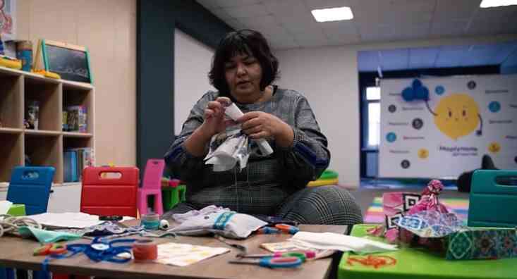«Я працюю в Маріупольському фаховому коледжі, але я не спілкуюсь із дітьми очно, я їх бачу через камеру, і то не зовсім, найчастіше я їх слухаю. Тому я хочу, щоб поруч зі мною були діточки», — каже майстриня Людмила Балашова.