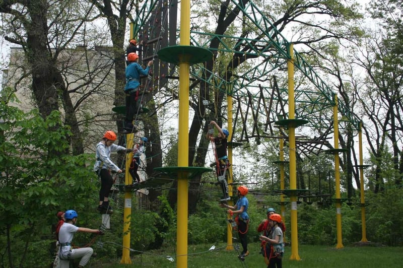 У Києві презентували перший в Україні «Мотузковий парк» на шкільному подвір’ї та навіть провели перші змагання.