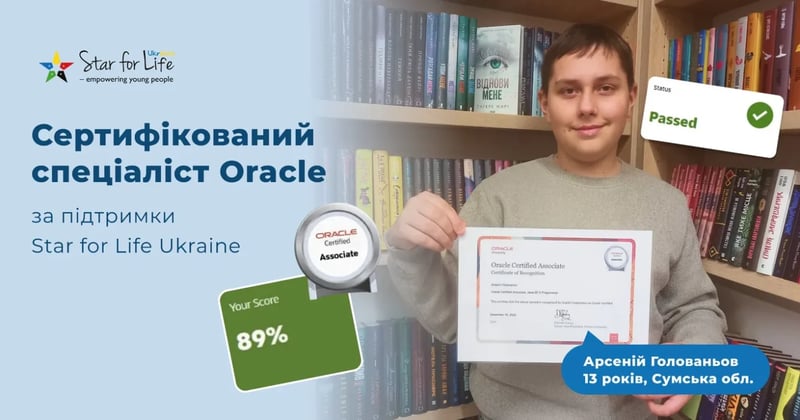 16 грудня 2025 року Арсеній успішно склав сертифікаційний іспит Oracle і набрав 89% за мінімально необхідних 65%. Підліток поділився, що найскладніше було поєднати інтенсивну «дорослу» підготовку з реаліями життя в прифронтовому регіоні — тривогами, обстрілами та нестабільним інтернетом.