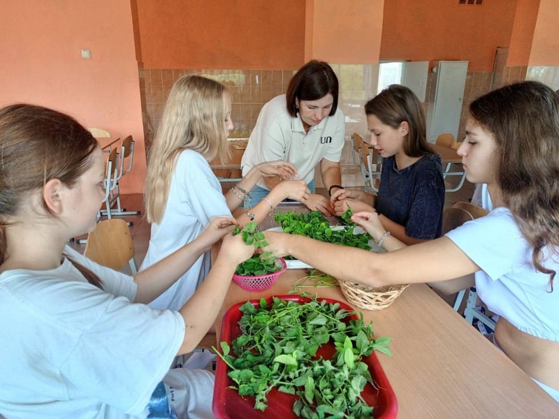 Діти підтримали ідею, адже замість сидіти в класі на уроці екології, вони власними руками працюють в теплиці — вже посадили м’яту, мелісу та календулу. А біля ліцею у нас багато липи, тому її цвіт ми також використовуємо для приготування чаю.