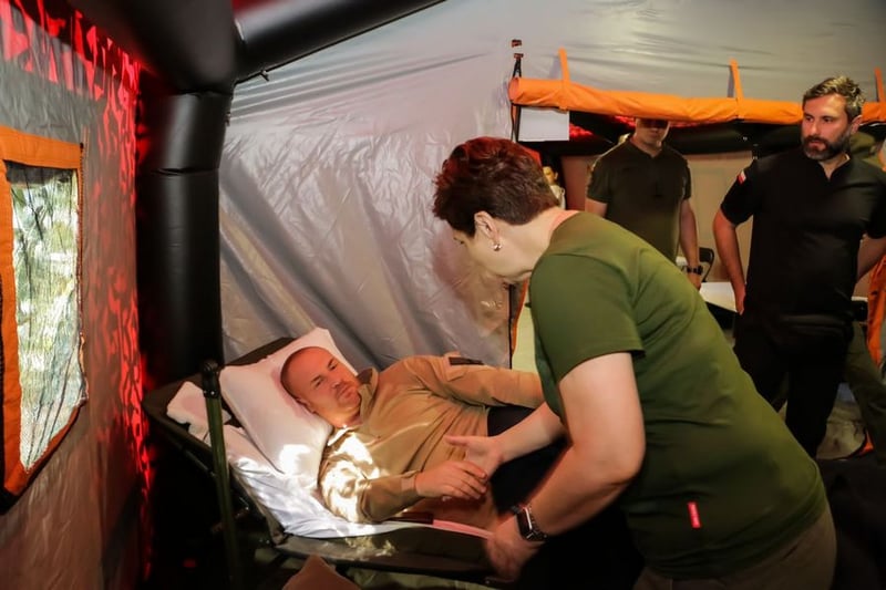 Медичний намет оснащений сучасним обладнанням та має все необхідне для надання допомоги травмованим або пораненим військовослужбовцям.