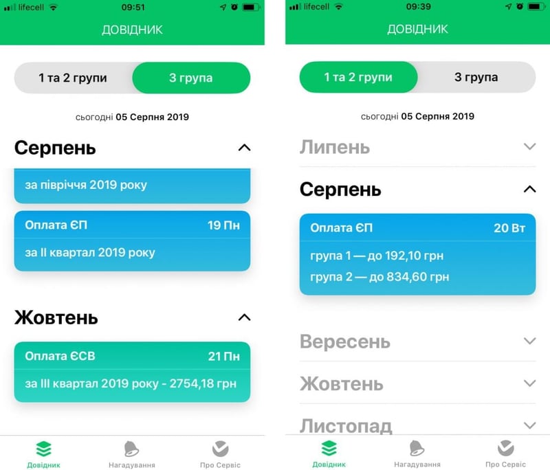 Додаток FeeTime – це податковий календар, в якому видно, в які терміни потрібно здійснити ту чи іншу операцію залежно від групи ФОП.