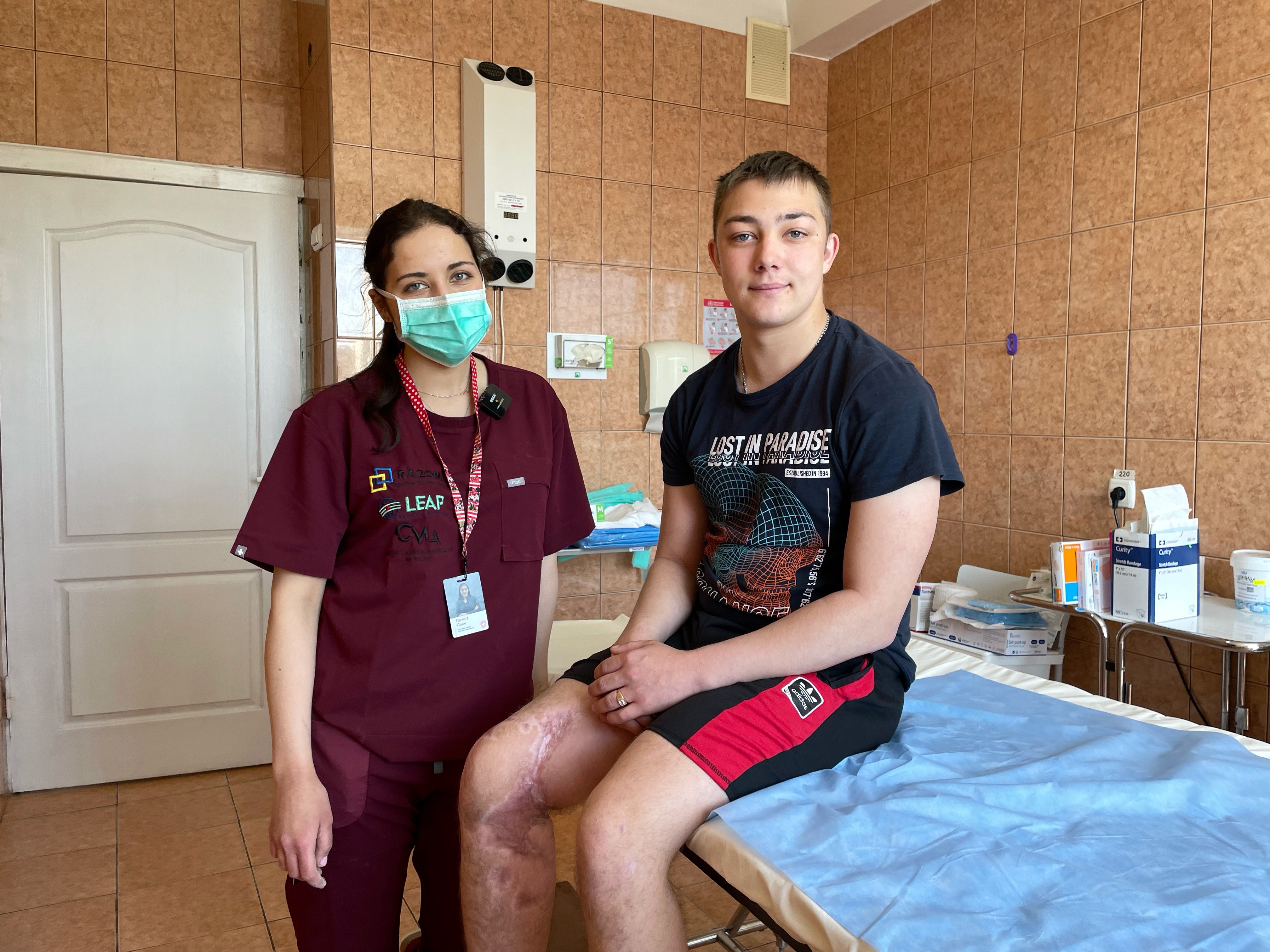 Хлопцеві провели понад 20 операцій, але з’явилася інша складна проблема. Через травму змінилася анатомія ноги, тепер нерви були розташовані близько до шкіри. А це — загроза нестерпних болей у хлопця в майбутньому. Аби запобігти цьому, лікарі задіяли революційну технологію — покриття рани синтетичним полімером.