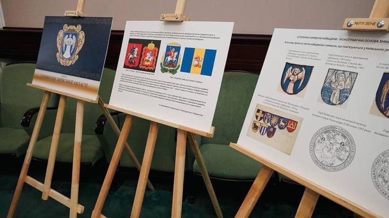 Депутатам Київської облради презентували новий герб та прапор області. Це перші напрацювання геральдистів, далі має відбутися широке обговорення в громадах.