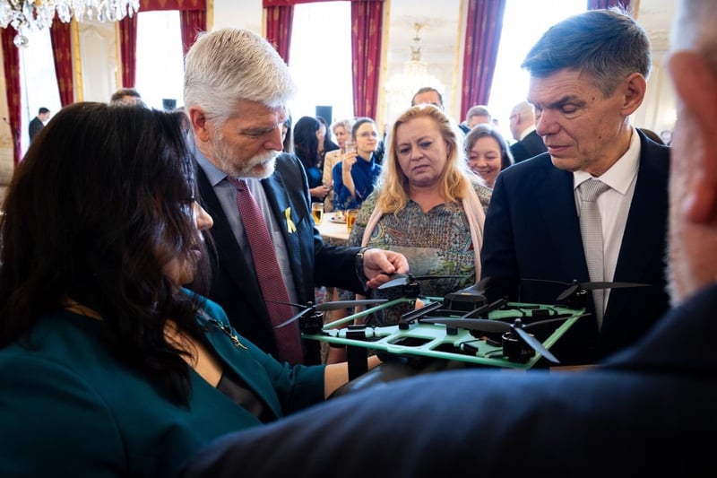 Символічний атрибут президенту передала українська громадська діячка та волонтерка ініціативи Hlas Ukrajiny Анастасія Сігнаєвська, яку запросили на зустріч із чеським лідером.
