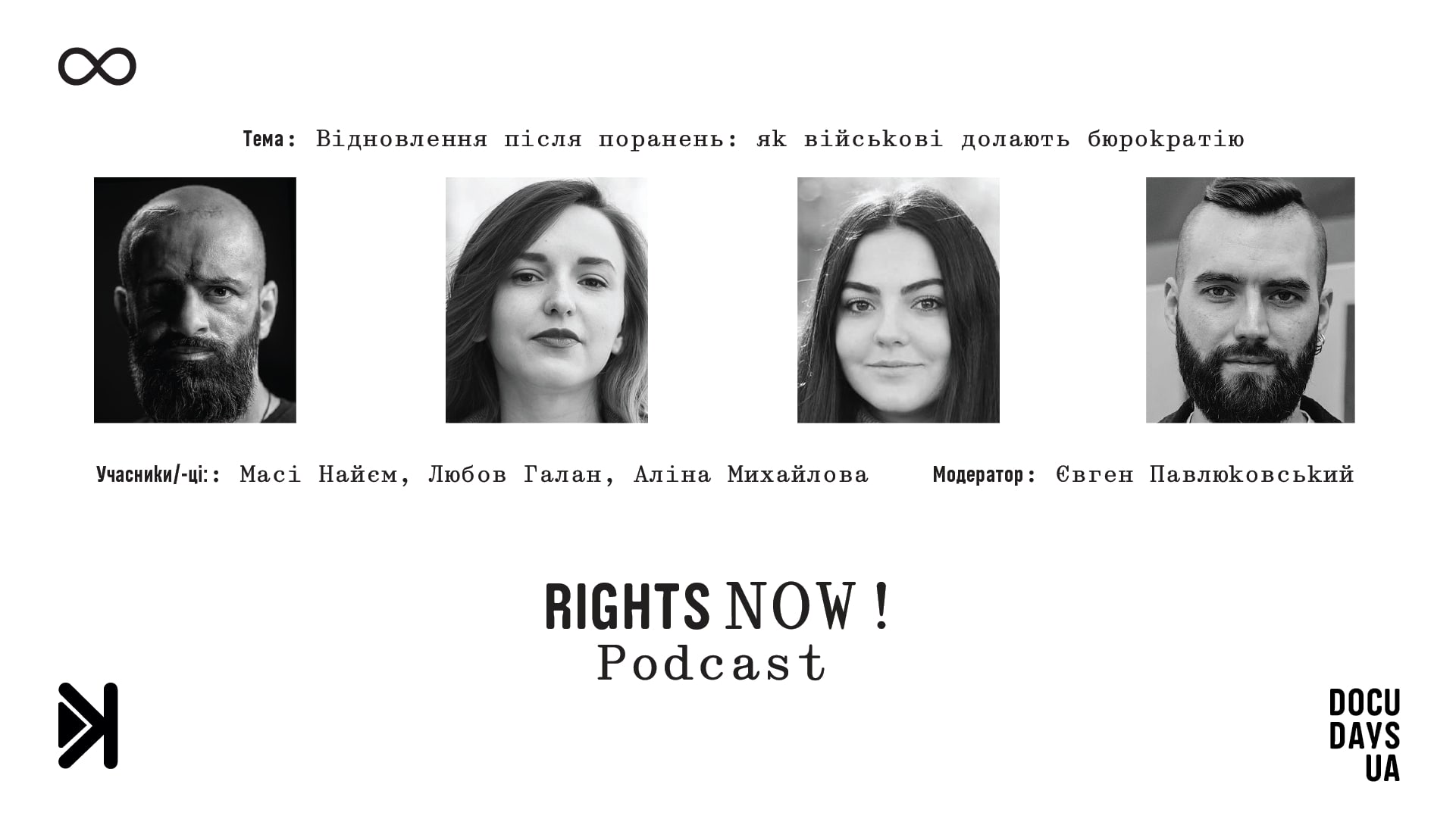 Docudays UA та «Радіо Сковорода» запустили подкаст RIGHTS NOW!. Це записи п’ятьох подій правозахисної програми RIGHTS NOW! та проєкту «Архів війни», що відбулися під час 20-го Міжнародного фестивалю документального кіно про права людини Docudays UA.