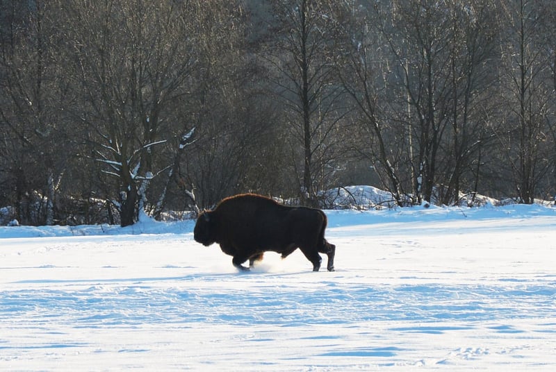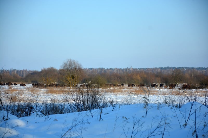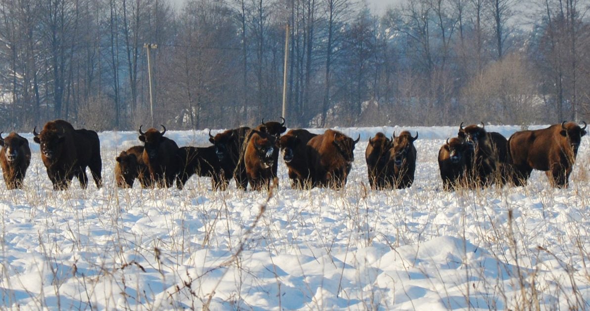 На Львівщині зафіксували величезне стадо червонокнижних зубрів, яке налічує понад сотню голів. Тварини гуляють засніженими полями та лісами Бродівської громади.