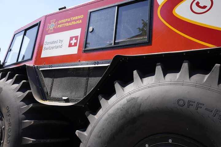 Зазначається, що рятувальники Херсонщини отримали всюдихід «Богун» за підтримки посольства Швейцарії в Україні.