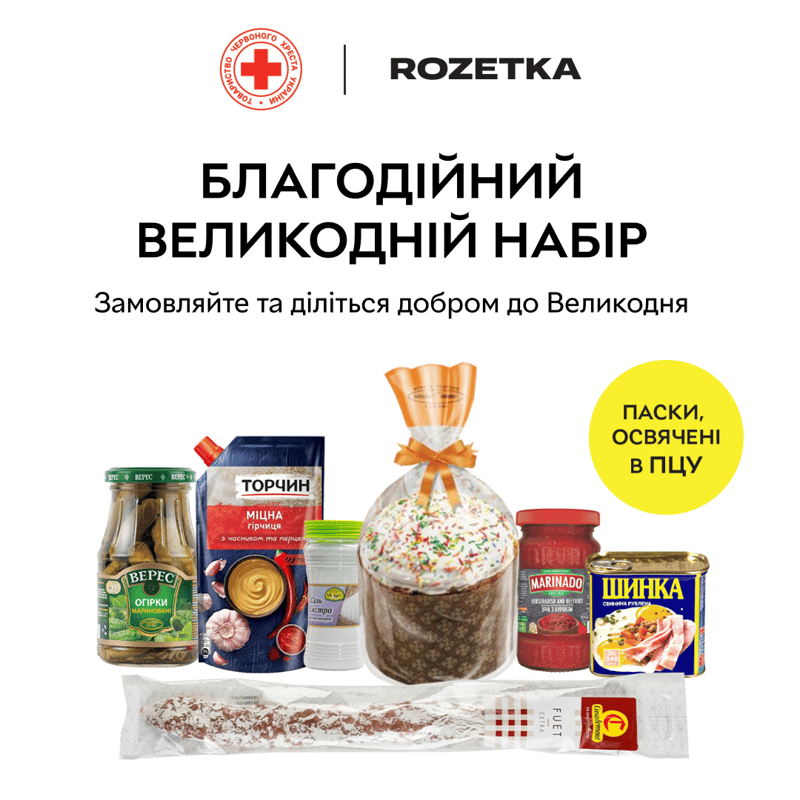 З вівторка, 27 квітня, на сайті rozetka.com.ua можна оплатити продуктовий набір із паскою, освяченою Православною Церквою України для людей із соціально вразливих верств населення — літнім самотнім людям та малозабезпеченим сім’ям, які виховують дітей з інвалідністю.