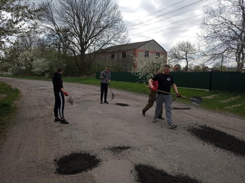 У селищі Требухівці на Хмельниччині жителі самі зробили ямковий ремонт на вулиці.