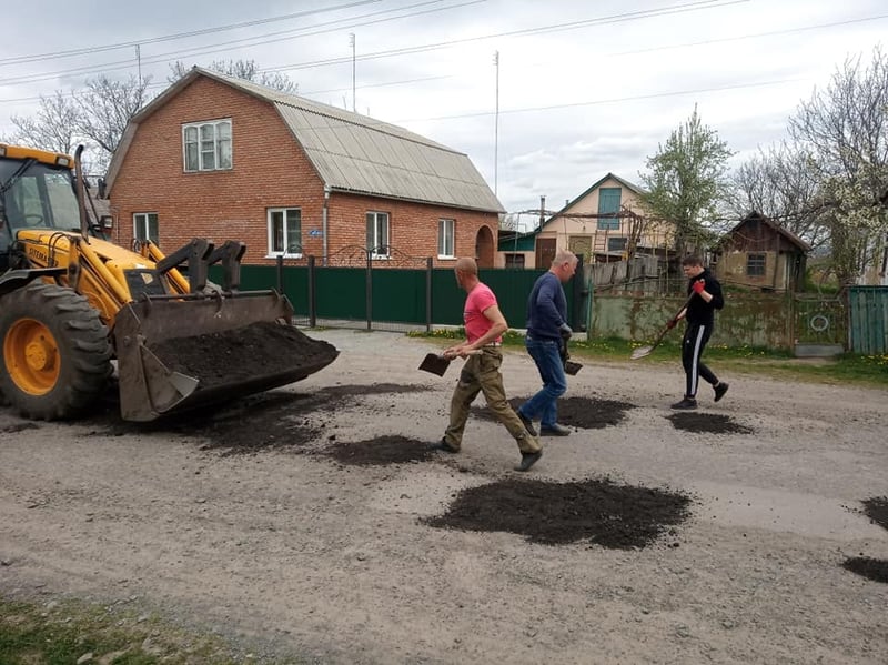 Зазначається, що жителі власними силами зробили по своїй вулиці ямковий ремонт.