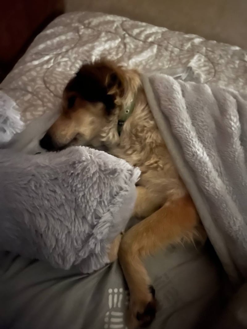 Вірочка спокійно перенесла дорогу й зараз адаптується до нового місця. У неї є всі необхідні умови, догляд і теплий дім, де дозволяють спати навіть на подушках і пригощають бульйоном з індички.