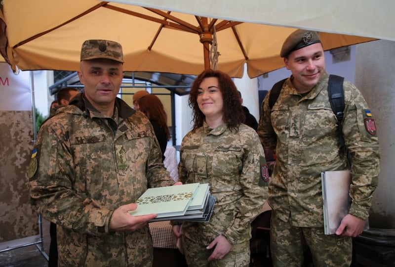 Форум розпочався зі зустрічі в Італійському дворику із письменниками, які пишуть на сучасну військову тематику. Відтак, кожен охочий міг познайомитись та поспілкуватись з авторами.