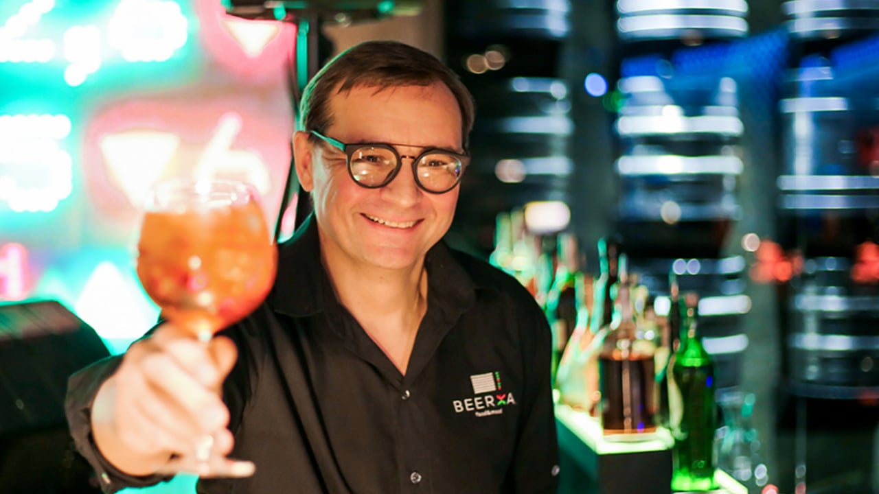 У 58 років Андрій Богомолов став барменом. Зараз він готує аперолі, варить каву та розважає бесідою відвідувачів.