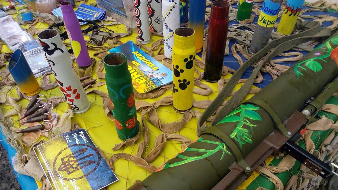 Зібрані на Донеччині патрони, гільзи і осколки снарядів дівчина-доброволець перетворює в яскраві сувеніри.