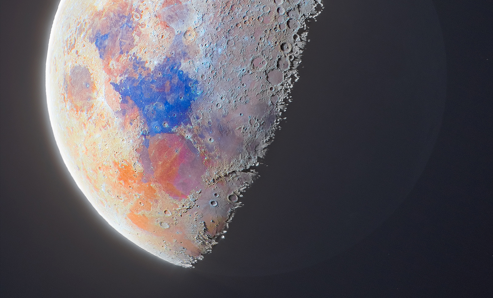 Як зазначив Ільдар, на знімку видно кольорові відтінки місячних морів — червонувато-рожеві, які вказують на наявність оксиду заліза, та сині, що свідчать про наявність оксиду титану.