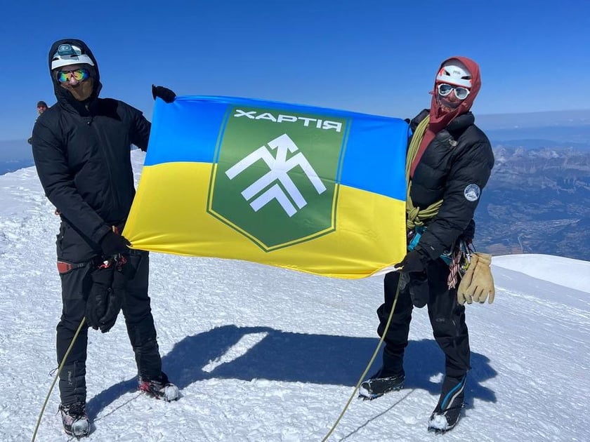 Офіцер «Хартії» розгорнув прапор бригади на найвищій вершині Західної Європи (ФОТО)