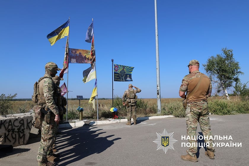 Поліцейські встановили біля стели Донецької області прапор у пам’ять про свого побратима (ФОТО)