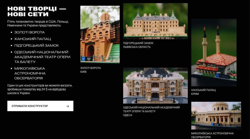 Lego випустили пʼять українських архітектурних памʼяток для відбудови