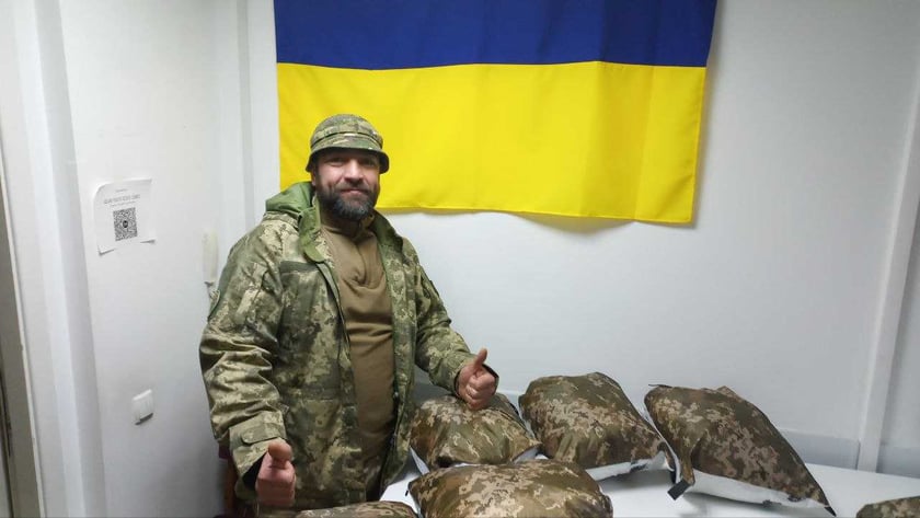Дружина військового шиє спорядження для захисників (ВІДЕО)