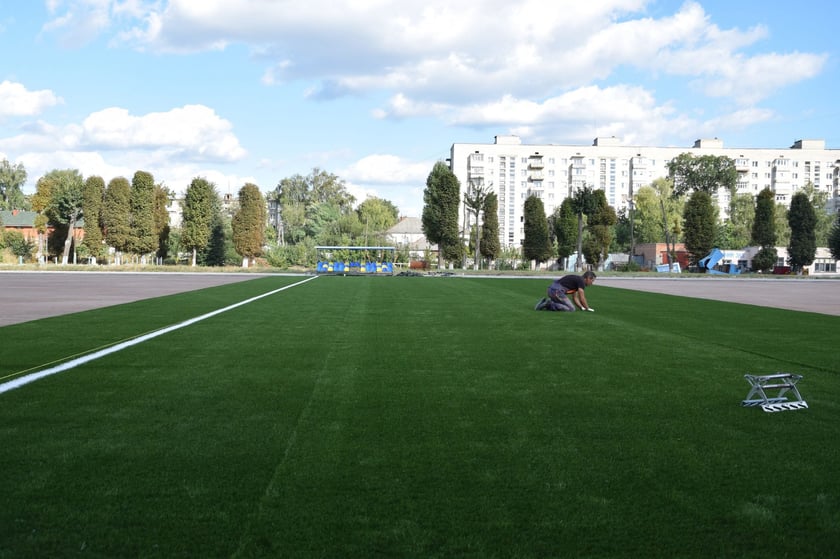 У громаді Блиставиця неподалік Бучі на Київщині роботи з будівництва стадіону ведуться за графіком – його обладнають...