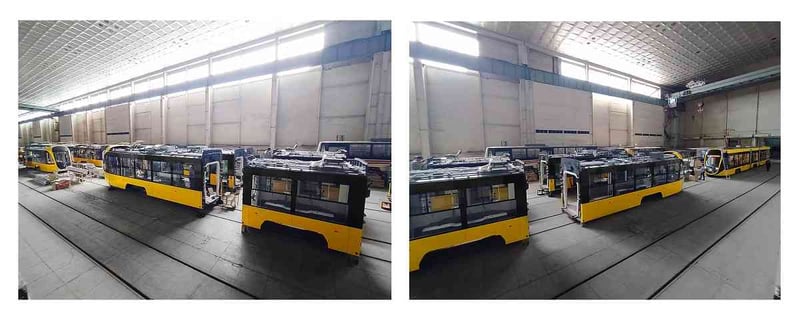 Українська компанія «Татра-Юг», що випускає трамваї, продемонструвала серійне виробництво трамвайних вагонів для Києва.
