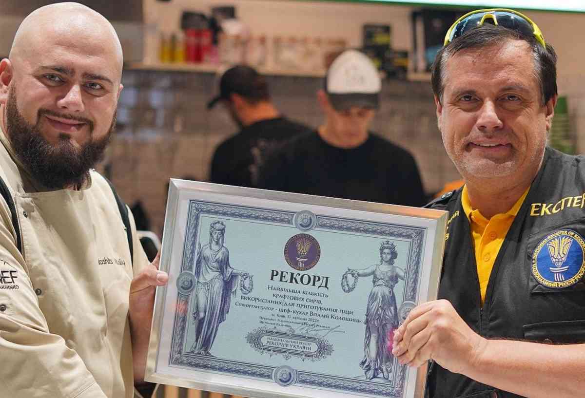 Тернопільський пiцайоло Вiталiй Колошиць встановив рекорд України, приготувавши піцу з найбільшою кількістю крафтових сирів.