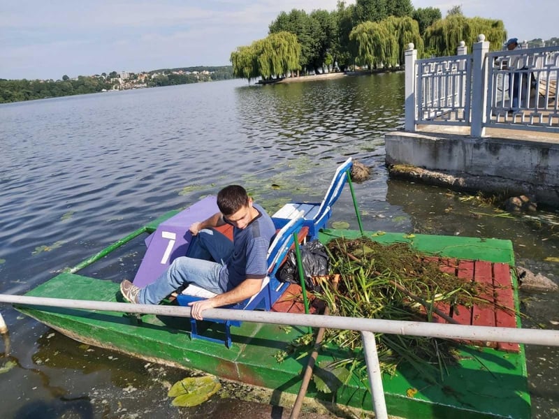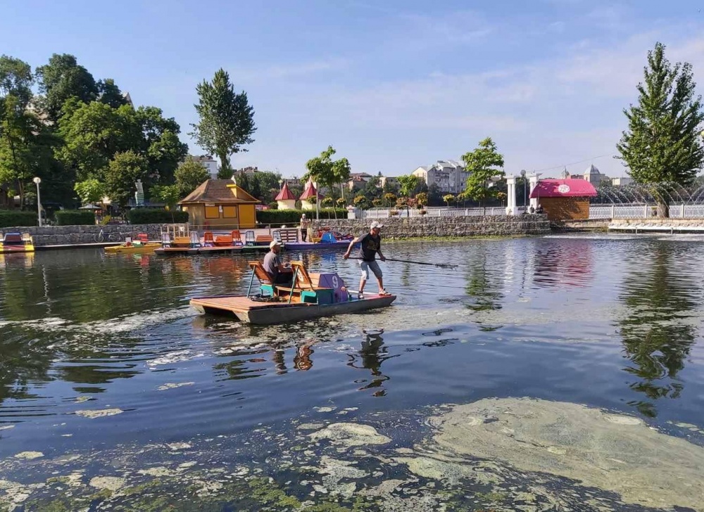 Комунальники забирають водорості, намул та сміття, залишене відвідувачами парку. Також на Тернопільському ставі збільшили години роботи аераційного фонтану.