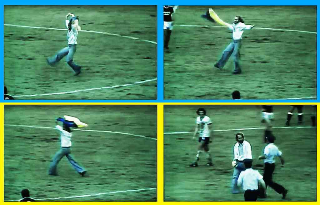Це фото, без перебільшення, історичне. Адже на ньому зафіксовано першу появу українського прапора на Олімпійських іграх. Щоправда, у доволі незвичний спосіб. 27 липня 1976 року у Монреалі під час півфіналу з футболу між збірними НДР і СРСР двадцятирічний представник української діаспори в Канаді Данило Мигаль вибіг на поле і станцював гопак у вишиванці з синьо-жовтим прапором.