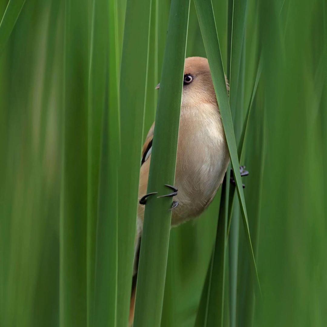 “Вусата синиця шпигує за фотографом. Сфотографовано на озері Вирлиця, Київ, Україна”, – написали під знімком.