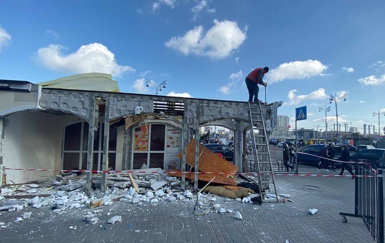 Відзначається, що демонтаж МАФів на київському вокзалі триває з осені минулого року.