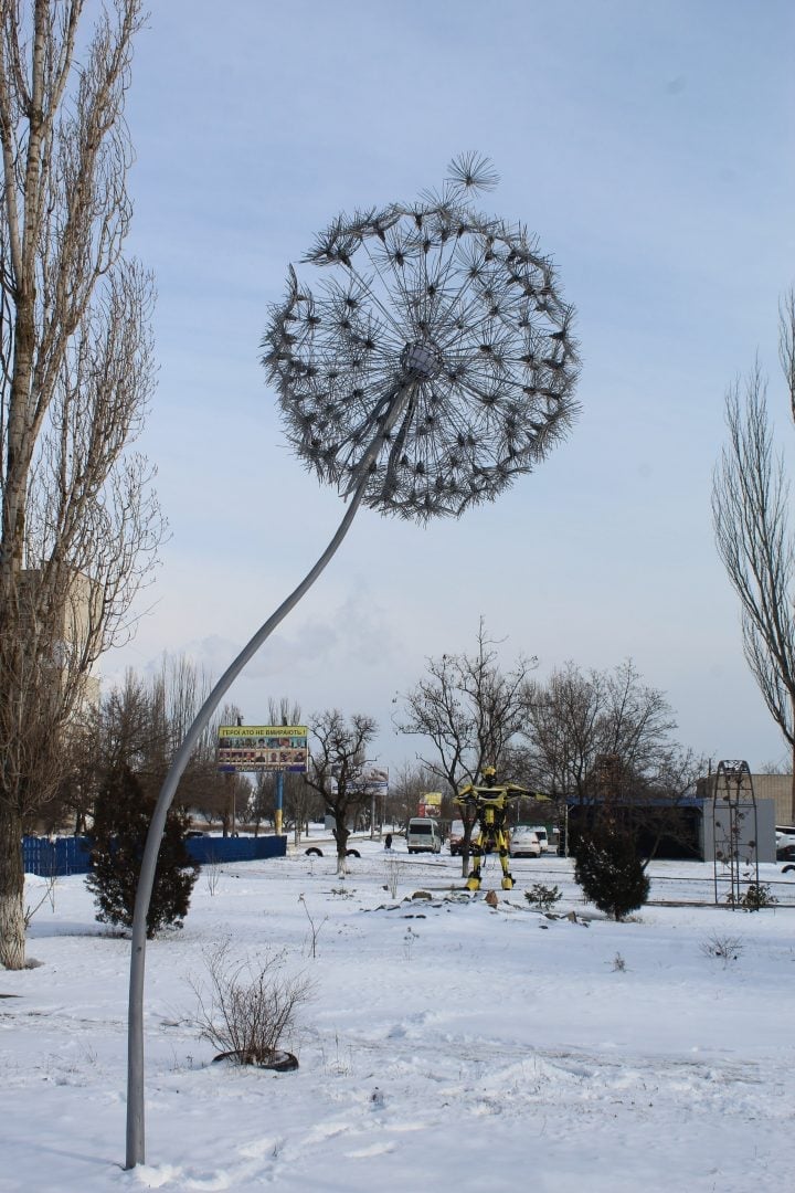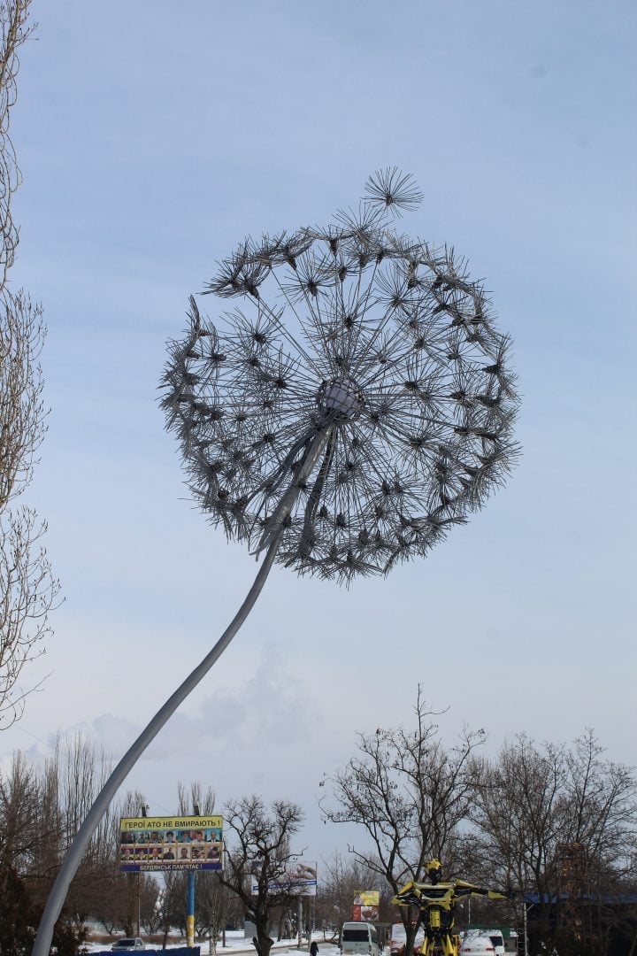 У Бердянську на Запоріжжі з’явилась велетенська металева кульбабка.