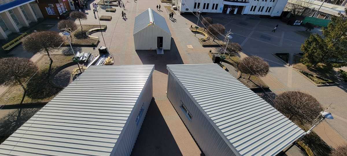 У Броварах на Київщині на майдані Свободи відкрили «Містечко миру». Йдеться про перший в Україні пересувний пункт незламності та громадський простір, спроектований архітектором Маріо Кучінелла.