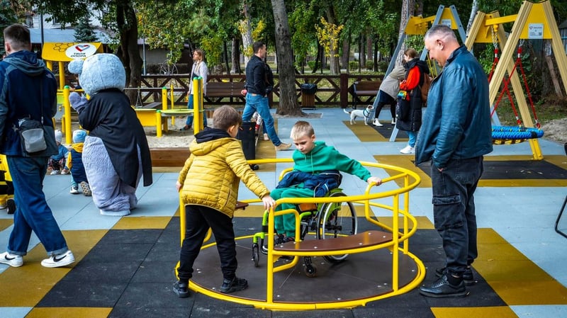 У Бучі Київської області з’явився перший інклюзивний дитячий майданчик, побудований за британськими стандартами.