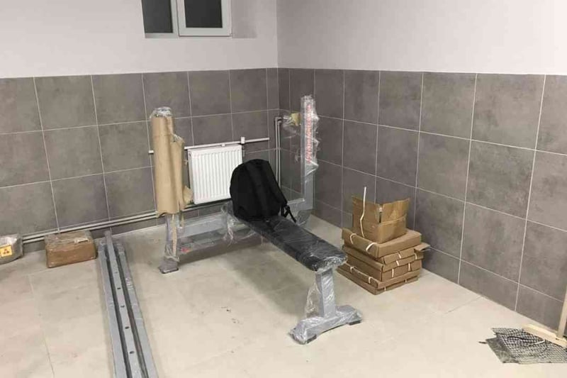 Наразі будівельники завершують монтаж вентиляційної системи. До приміщення велобази вже завезли меблі та деякі спортивні тренажери, зокрема дві багатофункціональні спортивні стінки, дві лавки для жиму штанги зі стійками, підставку для гантелей.