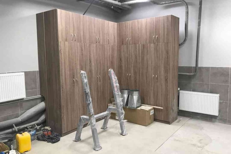 - зроблений ремонт у роздягальні, де встановили лавки з полицями для взуття та вішаки для одягу;
