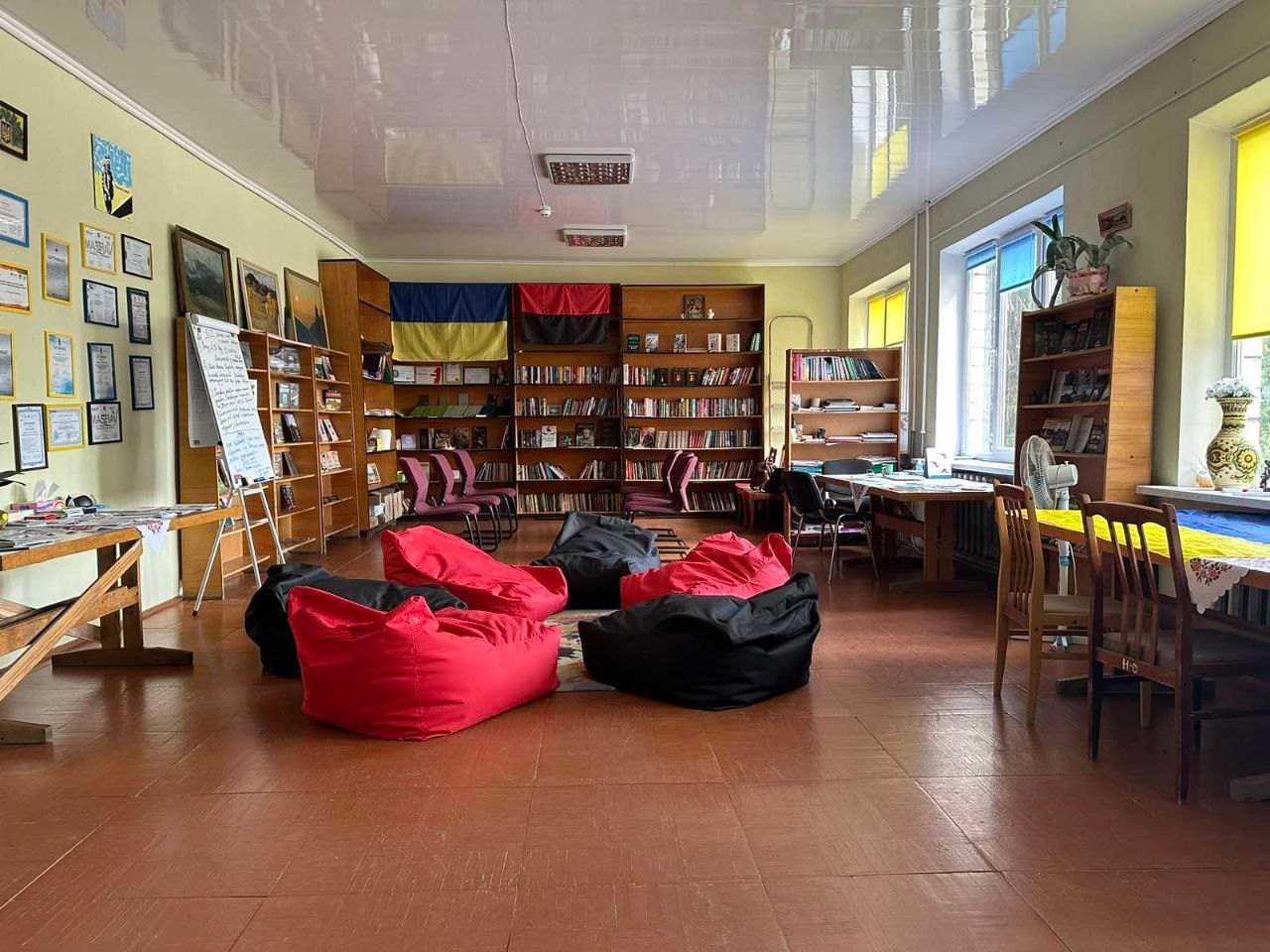 Простір облаштовували власними силами та за допомогою волонтерів. Особливу увагу звертали на кольорове оформлення, адже саме барви створюють необхідну атмосферу. Обрали поєднання жовто-блакитного та червоно-чорного. В облраді зазначили, що це сприяє хорошому психоемоційному стану.