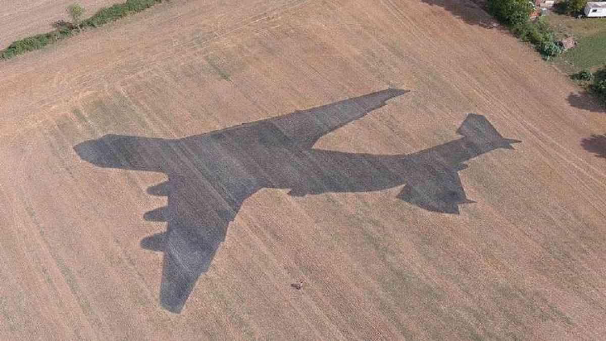 У Данії на пшеничному полі український скульптор Микита Зігура створив 80-метрову тінь найбільшого літака у світі Ан-225 «Мрія».
