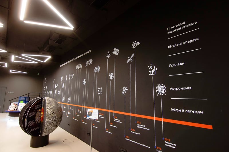 У фойє планетарію зробили виставкову зону, де розмістили інфографіку історії вивчення астрономії та дослідження космосу, проєкційну пісочницю з кінетичним піском, на якому зображення космічних об’єктів адаптується під рельєф поверхні. Також там є Місячний глобус, створений за реальними картами поверхні Місяця, інсталяція космічних артефактів, зони доповненої реальності. Трохи згодом тут також з’являться столи з інтерактивними панелями. Планується, що експозиції у виставковій залі постійно оновлюватимуться. Окрім того, зробили навчальну зону для проведення різних воркшопів, майстер-класів.