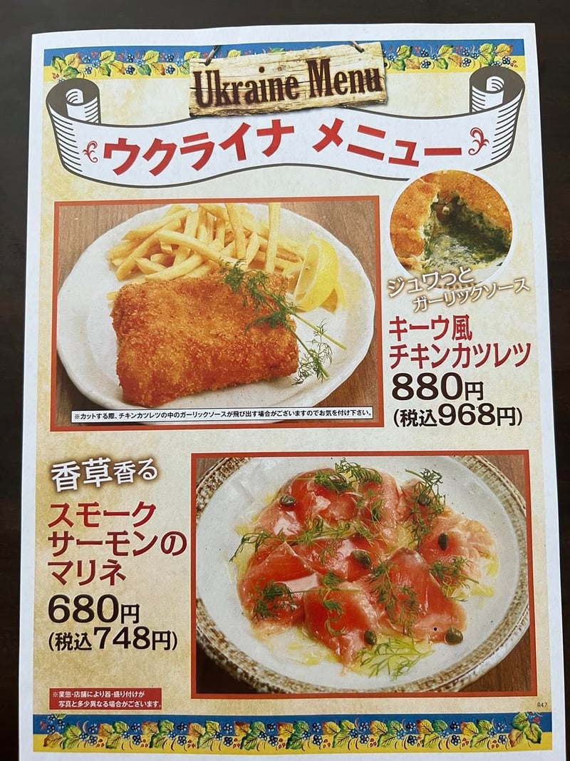 У Японії у мережі ресторанів «Монтероза» запустила українське меню. Частина коштів від продажу піде на гуманітарні потреби України.