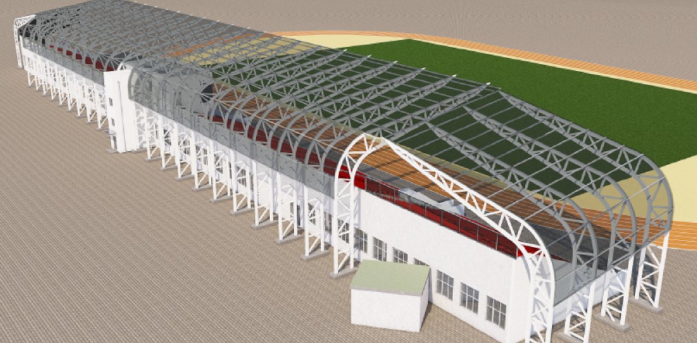Нині на об’єкті завершують бетонні роботи. Вже змонтовані металеві конструкції навісу трибун. Проведені мережі водопостачання та каналізації.