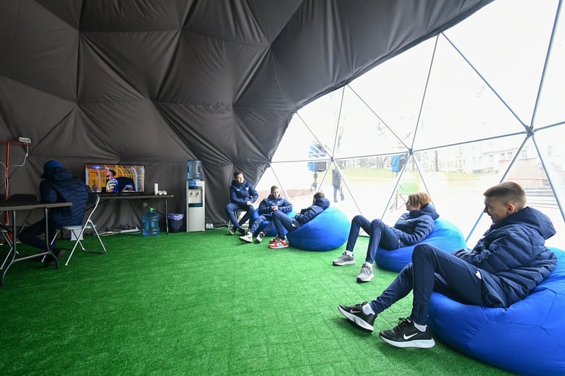 У брендовому «Пункті незламності» доступні світло, супутниковий інтернет, вода та напої. На затишних динамівських пуфах можна подивитися телевізор, зокрема – матчі улюбленої команди.
