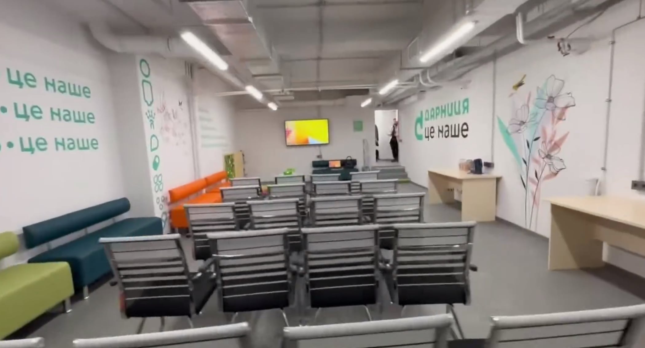 Укриття забезпечено безперебійним інтернет-зв’язком та альтернативним джерелом живлення, в стіни розписано віршами видатної української поетеси Ліни Костенко.
