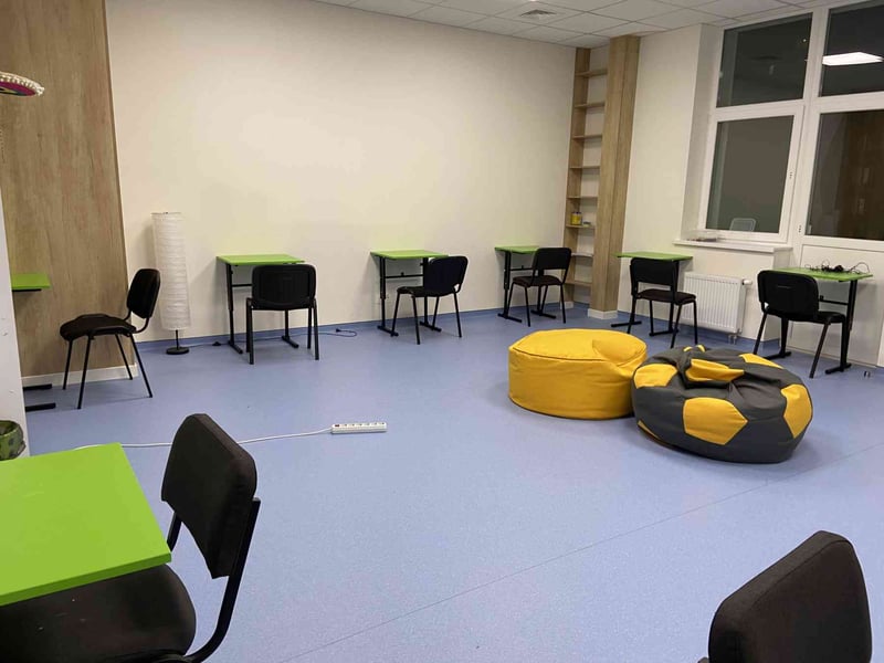 У новому просторі діти та молодь можуть безперешкодно приєднуватися до своїх онлайн-занять або виконувати домашнє завдання в комфортних умовах під керівництвом тьютора (навчального наставника), незалежно від графіків вимкнення світла. Повітряні тривоги також не будуть перепоною для навчання, адже в просторі є укриття.