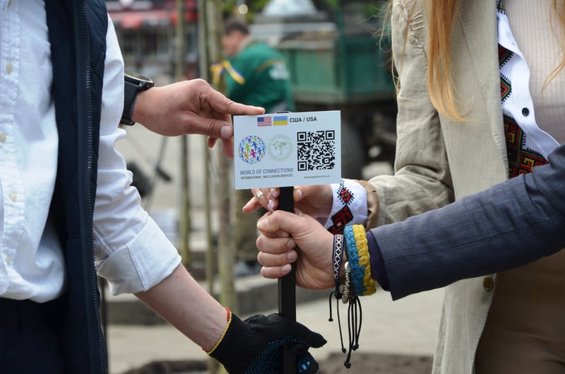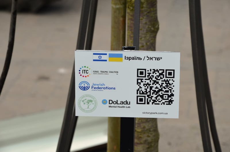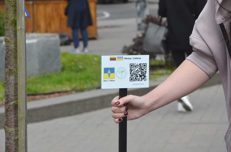 Біля кожного дерева встановлена відповідна «іменна» табличка з назвою країни, QR-кодом на посилання проєкту з можливістю переказу коштів.