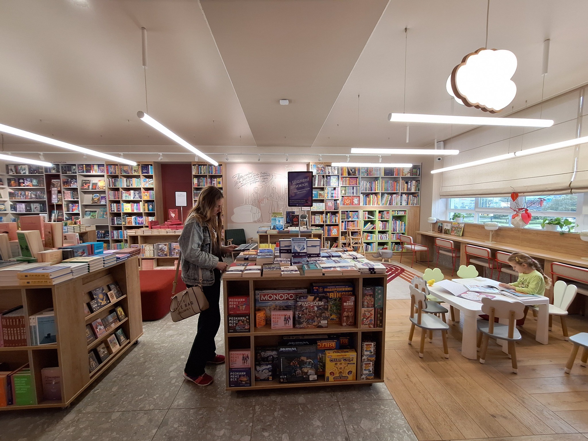 Велике приміщення книгарні поділили на три зони: