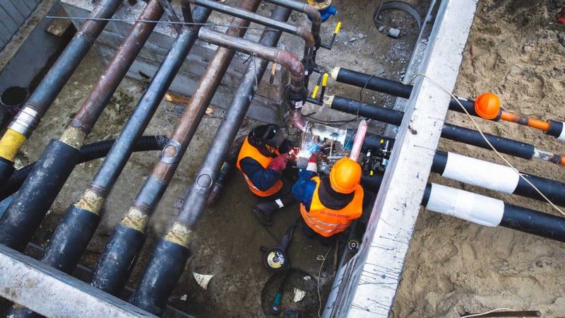 Старі труби замінюють на нові – попередньо ізольовані із системою сигналізації на випадок пошкодження. Повністю модернізують розподільчі трубопроводи централізованого опалення та гарячого водопостачання для цілого житлового кварталу на вул. Йорданській в Оболонському районі.